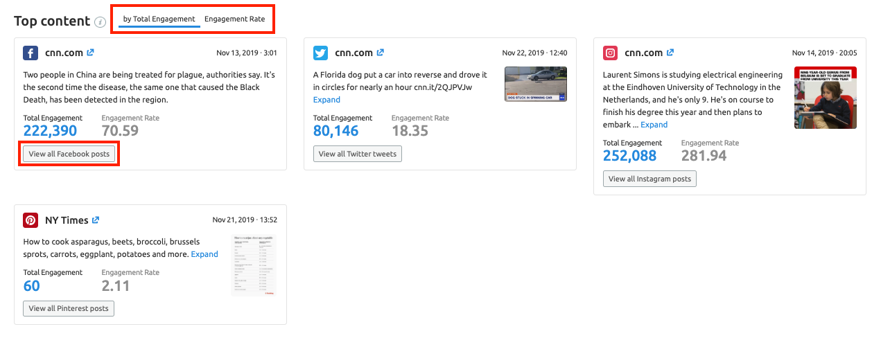 此工具还按参与度显示您的热门内容,这可以帮助您制定未来帖子的策略。