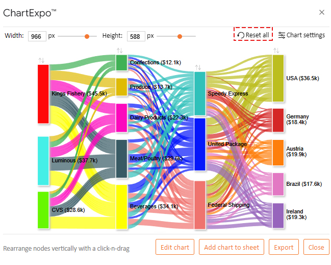 如果您单击重置所有按钮,所有设置都会消失,可视化将转到默认的桑基图。