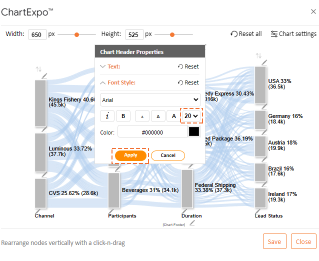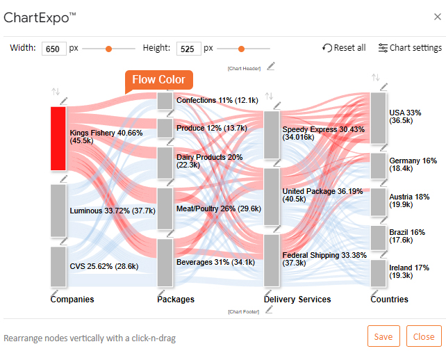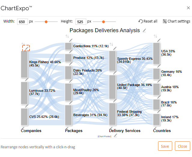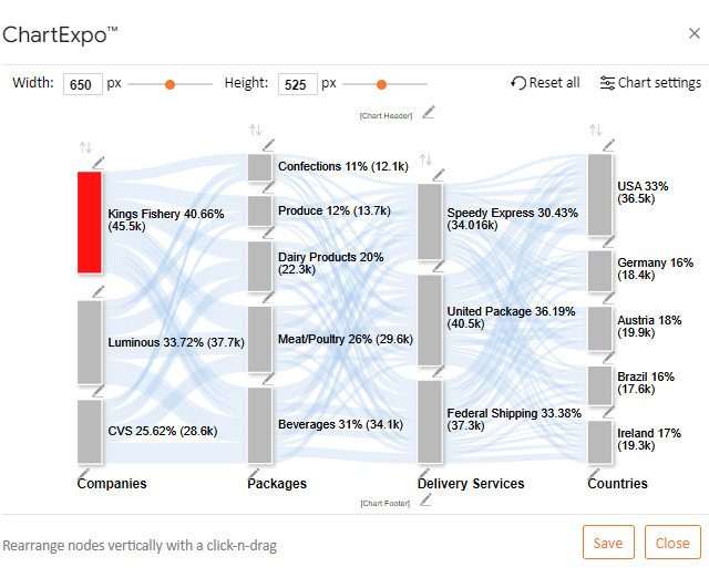 ChartExpo 中的交互式桑基图提供了每种类型的桑基图。您可以选择从 2 级到 8 级的级别。
