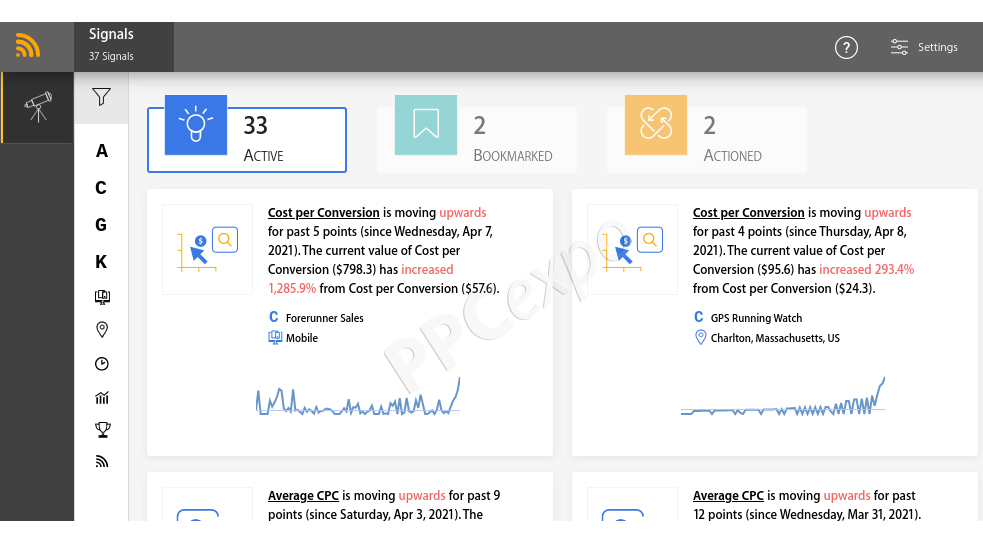 PPC Signal 是一种 PPC 优化工具,它使用人工智能和机器学习算法来自动监控和分析您的帐户。